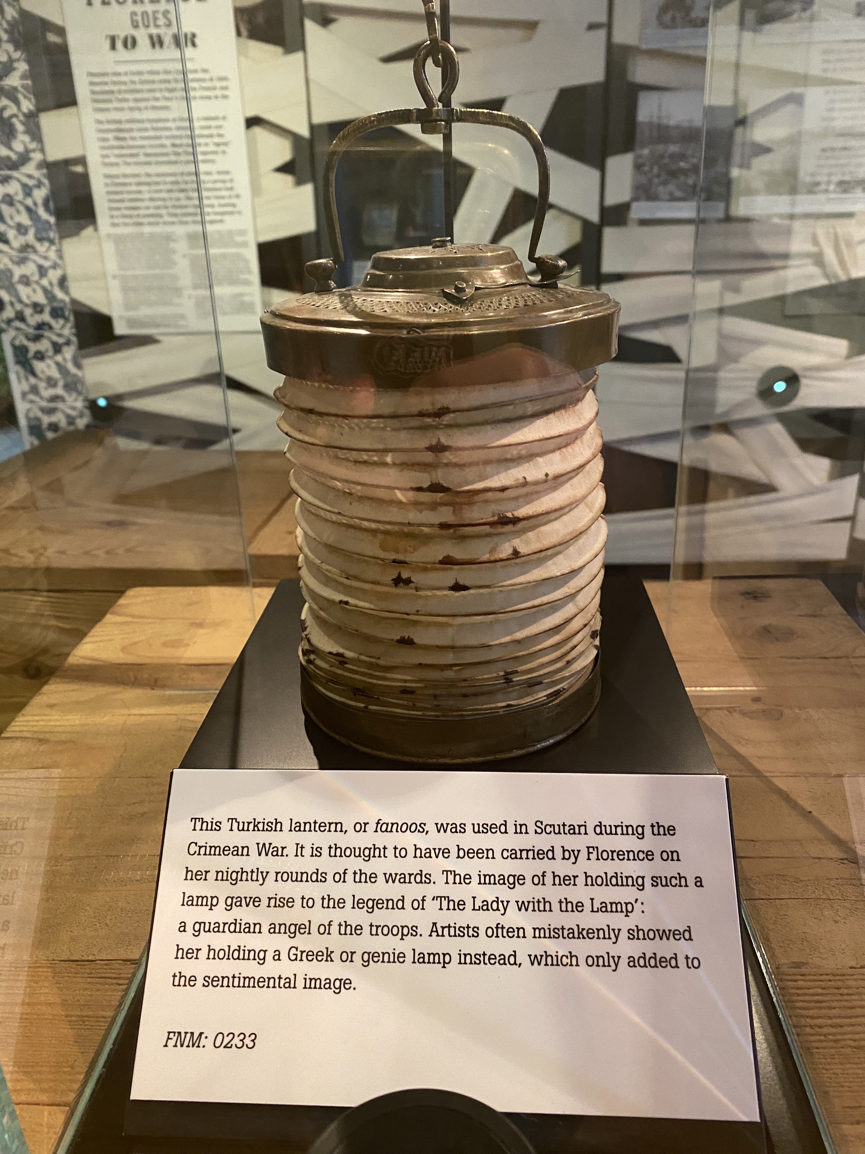 Left: a Turkish Lantern on display at the museum that used used in Scutari. Right: Coloured lithograph, Max and Simeon A Beeger, 1856 (c). No 2 in the series ‘Les Actualites’. Artists often mistakingly depicted Florence with a Greek or genie lamp.